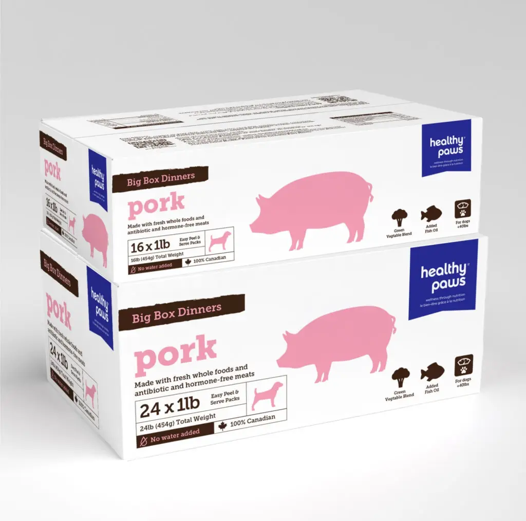The Big Box Dinner has a larger grind, resulting in bigger chunks of meat, bone, fruit, and vegetable. Suitable for dogs over 40 pounds. The Pork used in our recipes is hormone & antibiotic-free that is sourced from local Ontario farms. Rich in protein, pork supplies the essential amino acids your dog requires to build […]